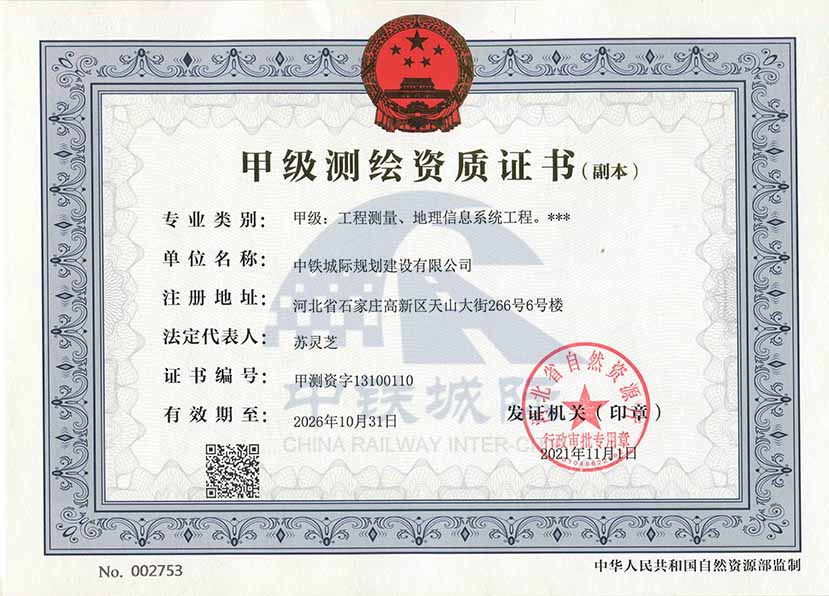 勘察甲級+地災(zāi)(勘查、設(shè)計、施工、評估)甲級+地基基礎(chǔ)施工壹級+工程測量甲級+地理信息系統(tǒng)甲級+界線與不動產(chǎn)測繪乙級+攝影測量與遙感乙級+海洋測繪乙級 中鐵城際勘察測繪業(yè)務(wù)作為主營業(yè)務(wù)的重要支撐,以先進(jìn)的技術(shù)設(shè)備與專業(yè)的人才隊伍,為各類工程建設(shè)和資源管理項目提供精準(zhǔn)、高效的勘察測繪服務(wù)。業(yè)務(wù)覆蓋巖土工程、工程物探、修復(fù)治理、測繪服務(wù)等多個板塊,憑借豐富的實踐經(jīng)驗與創(chuàng)新的技術(shù)手段,融合航空攝影測量、GIS集成、三維建模等前沿技術(shù),致力于為客戶提供從前期勘察、數(shù)據(jù)采集到后期分析處理的全流程解決方案,為工程建設(shè)、城市規(guī)劃、自然資源管理等提供可靠的數(shù)據(jù)支撐和技術(shù)保障,推動行業(yè)數(shù)字化、智慧化發(fā)展。