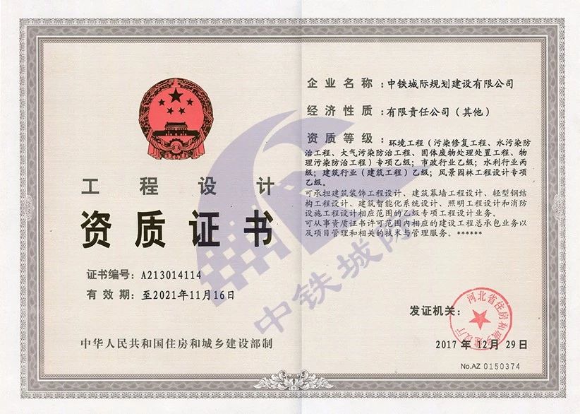環(huán)保工程(污染修復(fù)工程、水污染防治工程、大氣污染防治工程、固體廢物處置工程、物理污染防治工程)專項(xiàng)乙級(jí);市政行業(yè)乙級(jí);水利行業(yè)丙級(jí);建筑行業(yè)(建筑工程)乙級(jí);風(fēng)景園林工程設(shè)計(jì)專項(xiàng)乙級(jí)。