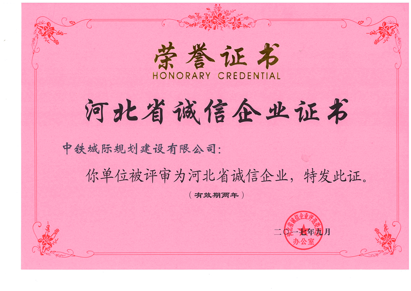 長期以來,中鐵城際規(guī)劃建設有限公司始終高度重視契約精神,守法經營、守合同重信用,以誠信經營促進企業(yè)的發(fā)展壯大。