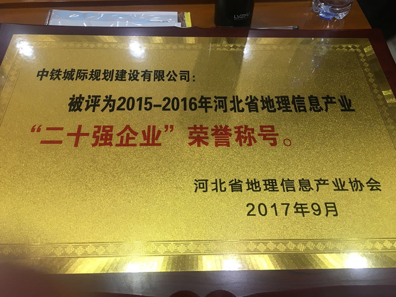 為表彰和獎(jiǎng)勵(lì)2015--2016年度在全省地理信息生產(chǎn)和科技進(jìn)步中做出突出成績的會員(企業(yè))單位,推進(jìn)企業(yè)單位三個(gè)文明建設(shè),根據(jù)《河北省地理信息產(chǎn)業(yè)二十強(qiáng)企業(yè)評選辦法》和《關(guān)于開展河北省地理信息產(chǎn)業(yè)二十強(qiáng)企業(yè)評選活動的通知》(冀地信協(xié)〔2017〕2號)精神,由具有企業(yè)測繪資質(zhì)的單位申報(bào),經(jīng)河北省地理信息產(chǎn)業(yè)協(xié)會各市聯(lián)絡(luò)處審核,組織二十強(qiáng)企業(yè)評審專家評審,報(bào)省地理信息局同意,共評選出全省地理信息產(chǎn)業(yè)二十強(qiáng)企業(yè)20家,中鐵城際規(guī)劃建設(shè)有限公司榜上有名。