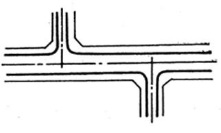 T字形交叉口的變化,交叉口之間的距離應大一些,否則將影響主干道上的車速。