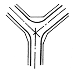是道路盡端與別條道路相交的主要形式;一般用于次要道路與主要干道相交的交叉處,應優先保證主要干道的交通通暢。