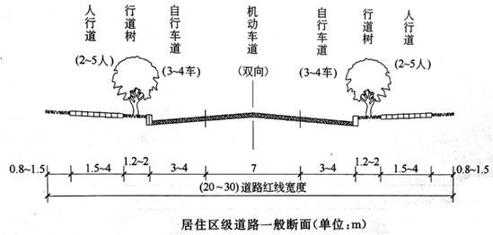 1).居民區級道路:道路紅線之間的道路各項用地寬總和。