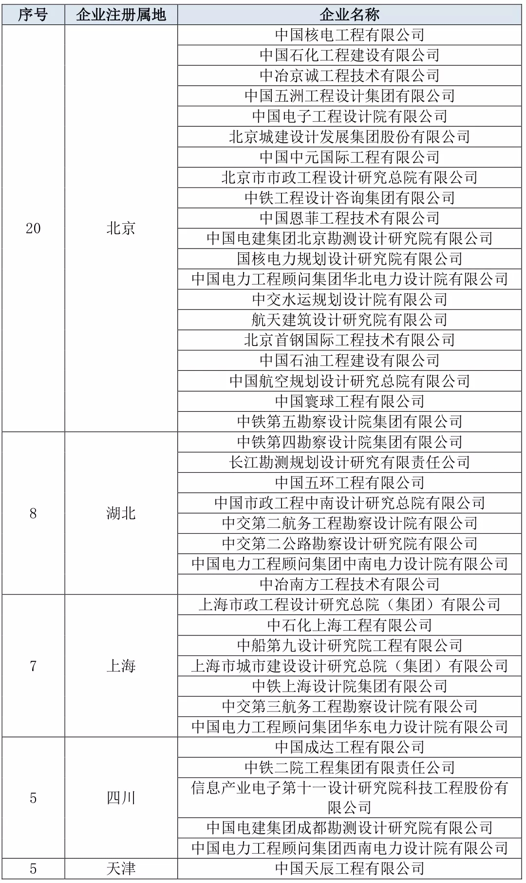 2018最新工程設計綜合甲級資質名單,值得收藏