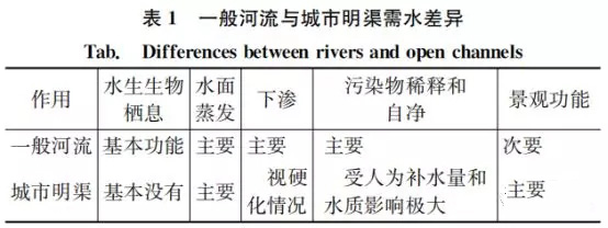 相對于自然河道,明渠水質(zhì)、水量受人為控制作用明顯,與自然生態(tài)系統(tǒng)的交互作用較弱,基本喪失了一般河流的自然屬性和生態(tài)屬性,因此其需水量計算不再簡單適用于一般河道以生態(tài)環(huán)境機(jī)理為主的計算方法,如Tennant法、濕周法等。城市明渠的需水量主要是考慮在一定的環(huán)境目標(biāo)、景觀要求下采取的人為補(bǔ)水措施,主要受到蒸發(fā)、下滲、污染物降解等因素影響,目前相關(guān)經(jīng)驗較少。