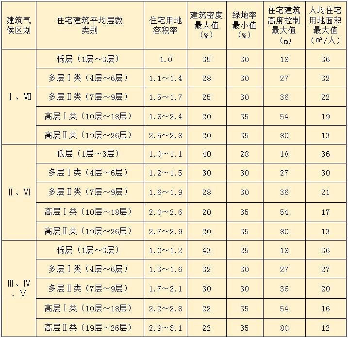 4.0.1 各級(jí)生活圈居住區(qū)用地應(yīng)合理配置、適度開(kāi)發(fā),其控制指標(biāo)應(yīng)符合下列規(guī)定: