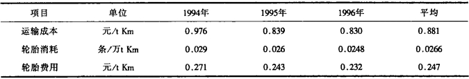 表 3 歷年電動(dòng)輪汽車運(yùn)輸成本和輪胎消耗 |