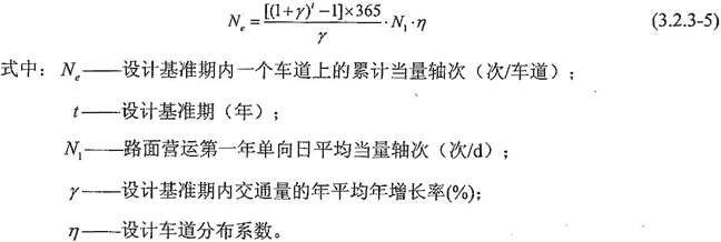 6 瀝青路面設(shè)計基準(zhǔn)期內(nèi)一個車道上的累計當(dāng)量軸次應(yīng)按下式計算: