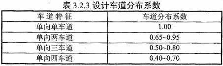 5 瀝青路面設(shè)計車道分布系數(shù)宜依據(jù)道路交通組成、交通管理情況,通過實地調(diào)查確定,也可按表3.2.3選定。當(dāng)上下行交通量或重車比例有明顯差異時,可區(qū)別對待,可按上下行交通特點分別進行厚度設(shè)計。