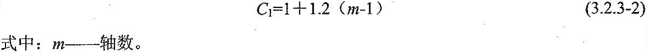當(dāng)軸間距大于或等于3m時,應(yīng)按一個單獨的軸載計算;當(dāng)軸間距小于3m時,雙軸或多軸的軸數(shù)系數(shù)應(yīng)按下式計算: