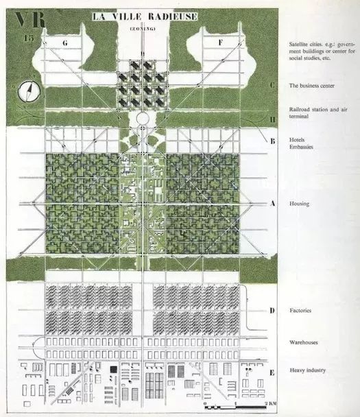 勒柯布西耶同樣試圖找到擺脫城市污染和過度擁擠困境的方法,但與霍華德不同的是,他想到的是建設,而不是離開。