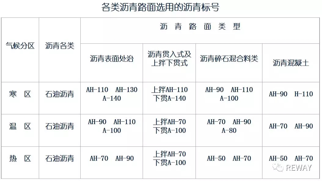 熱區(qū)選用稠度高、60℃粘度大的瀝青,寒區(qū)選用稠度低、低溫延度大的瀝青。