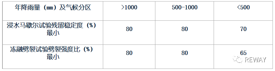 注:對于有條件的地方,為了減少凍融劈裂試驗(yàn)因空隙變異而造成的試驗(yàn)結(jié)果的偏差。可采用控制試件成型空隙率的AASHTOT283方法,指標(biāo)同凍融劈裂試驗(yàn)要求。