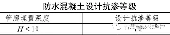 1、防水混凝土抗滲等級應符合下表規定。
