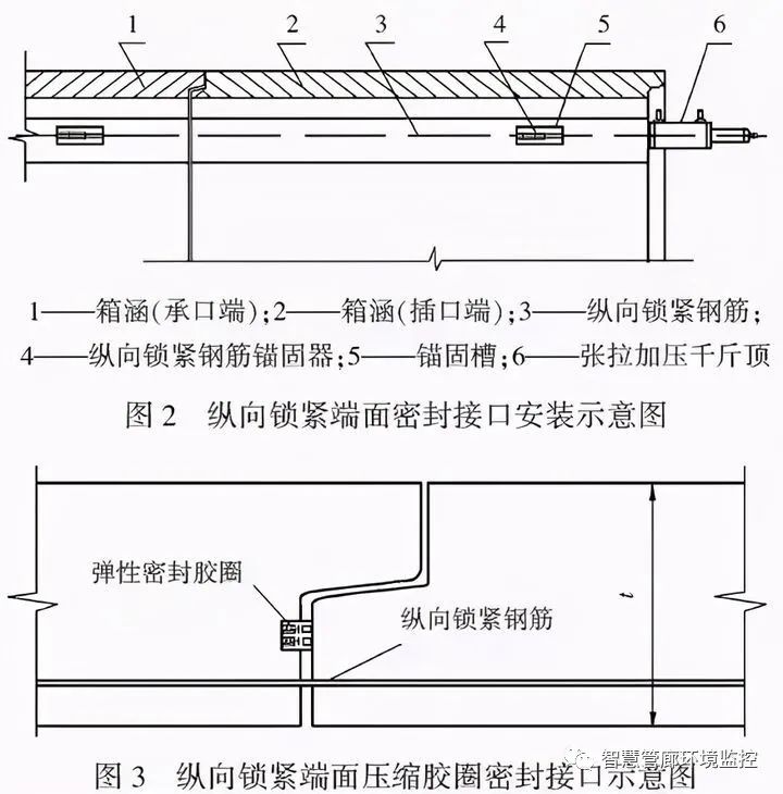 端面接口密封材料常用彈性膠條,其寬度為20×30mm、高為20mm、25mm。膠條的性能與用于混凝土管膠圈相似,為彌補箱涵構件端面混凝土存在的氣泡或小凹坑,彈性膠條的對接表面可膠接5mm厚的遇水膨脹膠料,使其水脹性能填充氣泡和凹坑,防止接口滲水。