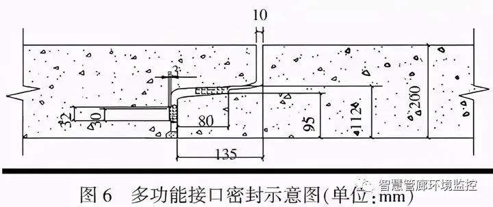 ②地下綜合管廊的設計使用年限為100 年,密封膠圈的耐老化性能成為關鍵,使用數十年后,橡膠的應力松弛、物理性能變化、彈性對混凝土面的擠壓應力是否還能滿足接口抗滲要求等成為疑問,而多功能接口不但具有現時接口質量可檢性,而且還具備接口質量的可補性。當接口中使用的膠圈性能不能滿足接口抗滲要求時,可擰開上下接口檢驗進水通道的螺帽,吹凈其中水分和雜物,接上灌漿設施,向兩個膠圈之間的空腔內灌注防水密封膠液,形成二次柔性密封接口。