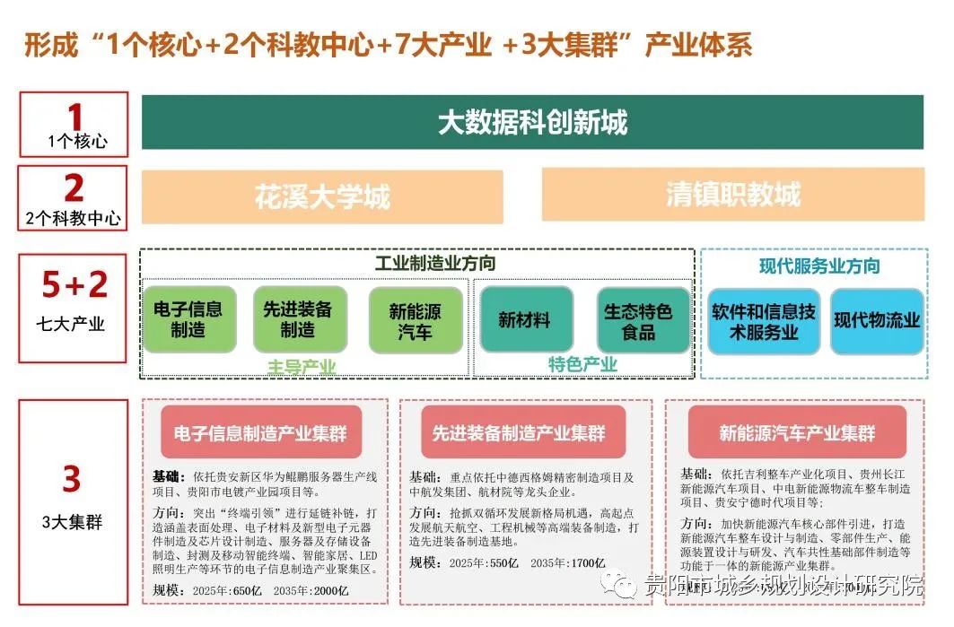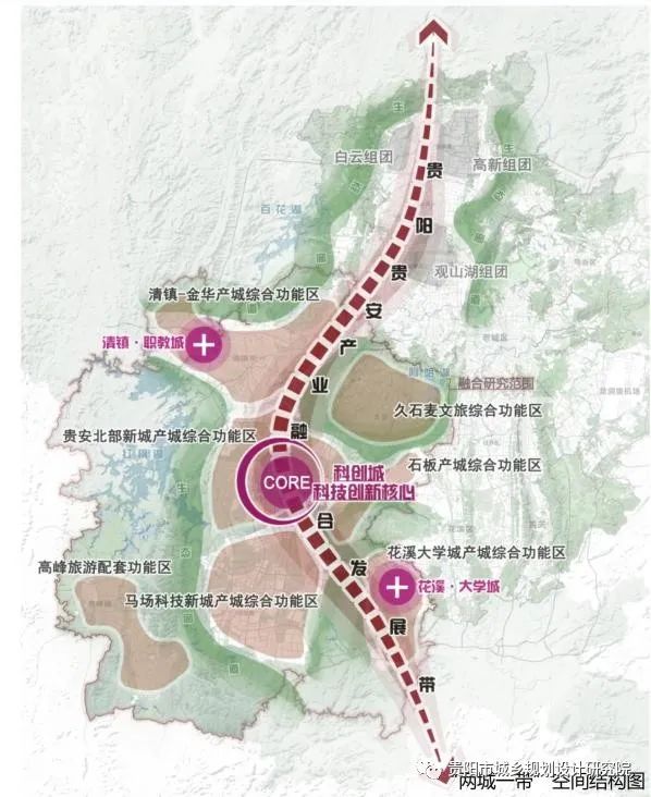 七區(qū):七個功能區(qū)‘’包括清鎮(zhèn)-金華、貴安北部新城、馬場科技新城、石板、花溪大學(xué)城五大產(chǎn)城綜合功能區(qū),以及久石麥文旅綜合功能區(qū)和高峰旅游配套功能區(qū)。