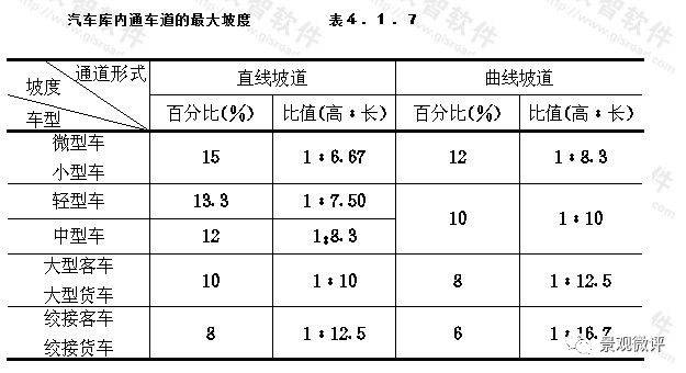 汽車庫內(nèi)當(dāng)通車道縱向坡度大于10%時,坡道上、下端均應(yīng)設(shè)緩坡。其直線緩坡段的水平長度不應(yīng)小于3.6m,緩坡坡度應(yīng)為坡道坡度的1/2。曲線緩坡段的水平長度不應(yīng)小于2.4m,曲線的半徑不應(yīng)小于20m,緩坡段的中點為坡道原起點或止點。