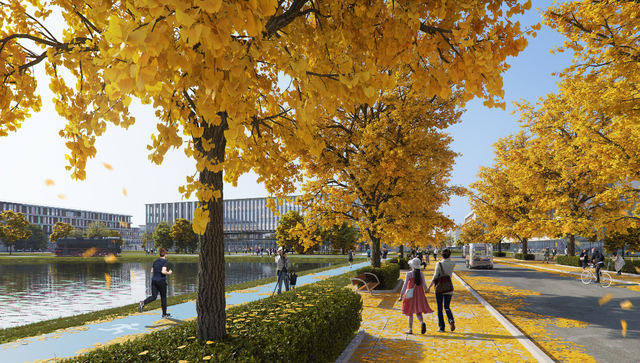 打造以學科貫通為核心的研究型校園,是北交大雄安校區規劃設計的重點。規劃方案設計了一條校園“學術中軸”,公共教學、實驗、研究等功能一應俱全,可承載三大一流學科群和兩大基礎學科建設。該校雄安校區還以交大校訓和飲水思源的傳統為名,規劃了三大廣場:思源、知行、天佑,打造了新明湖水系和24小時開放書院全時交流共享空間。