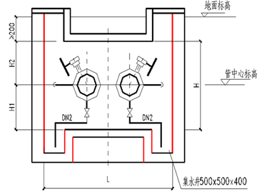凈空高度不小于1.8m,通道寬度不小于0.6m;保溫結構表面與檢查室地面距離不小于0.6m;人孔直徑不小于0.7m,不少于2個,對角布置,人孔避開檢查室內設備,凈空面積小于4m2時,可設1個人孔;至少設1個集水坑,置于人孔下方;檢查室地面應低于管溝內底不小于0.3m;爬梯高度大于4m時應設護攔或在爬梯中間設平臺。