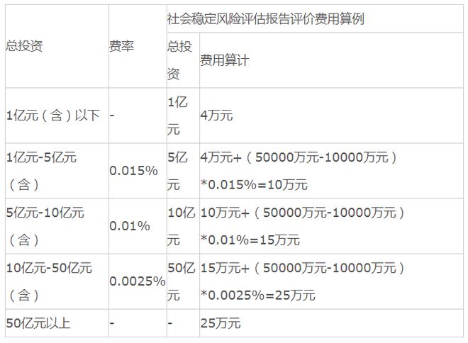 社會穩(wěn)定風(fēng)險評估咨詢?nèi)≠M可參考地方收費標(biāo)準(zhǔn),如上海市地方標(biāo)準(zhǔn)——《上海市重點建設(shè)項目社會穩(wěn)定風(fēng)險評估咨詢服務(wù)收費暫行標(biāo)準(zhǔn)》(滬發(fā)改投〔2012〕130號),以估算總投資額為計費基數(shù),根據(jù)建設(shè)項目不同的性質(zhì)、內(nèi)容和所處區(qū)域,采取按估算投資額分檔定額計費。