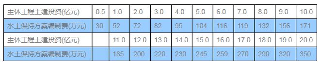 水土保持咨詢服務(wù)取費可參考《關(guān)于開發(fā)建設(shè)項目水土保持咨詢服務(wù)費用計列的指導(dǎo)意見》(保監(jiān)〔2005〕22號),其中可行性研究階段的開發(fā)建設(shè)項目水土保持方案編制費可參考下表標(biāo)準(zhǔn)計列。