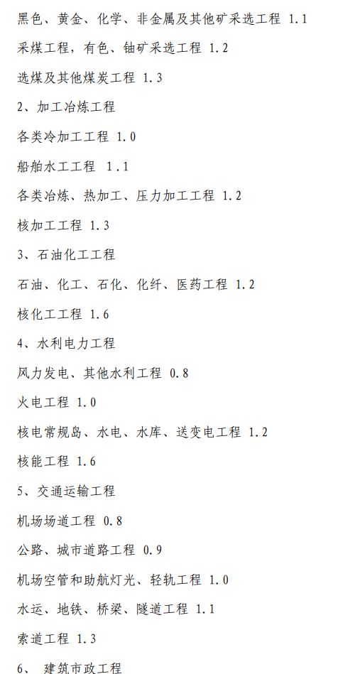 工程復(fù)雜程度分為一般、較復(fù)雜和復(fù)雜三個等級,其調(diào)整系數(shù)分別為:一般(Ⅰ級)0.85;較復(fù)雜(Ⅱ級)1.0;復(fù)雜(Ⅲ級)1.15。