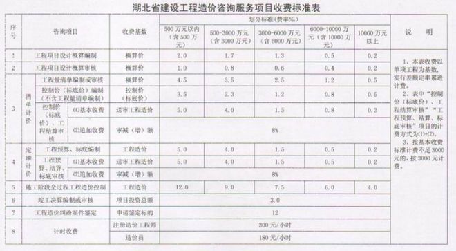 湖北省3000萬元以下建設(shè)項目估算投資額分檔收費標(biāo)準(zhǔn)