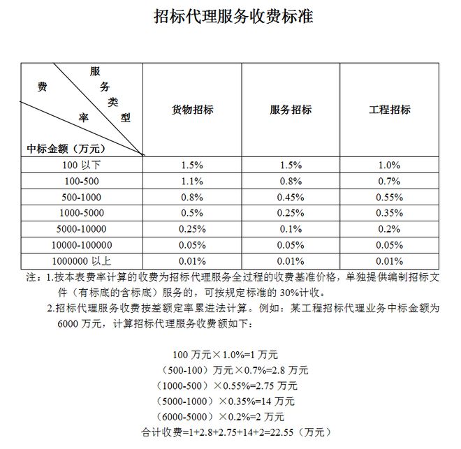 招標(biāo)代理服務(wù)取費可參考《國家計委關(guān)于印發(fā)<招標(biāo)代理服務(wù)收費管理暫行辦法>的通知》(計價格〔2002〕1980號),采用差額定率累進(jìn)計費方式。