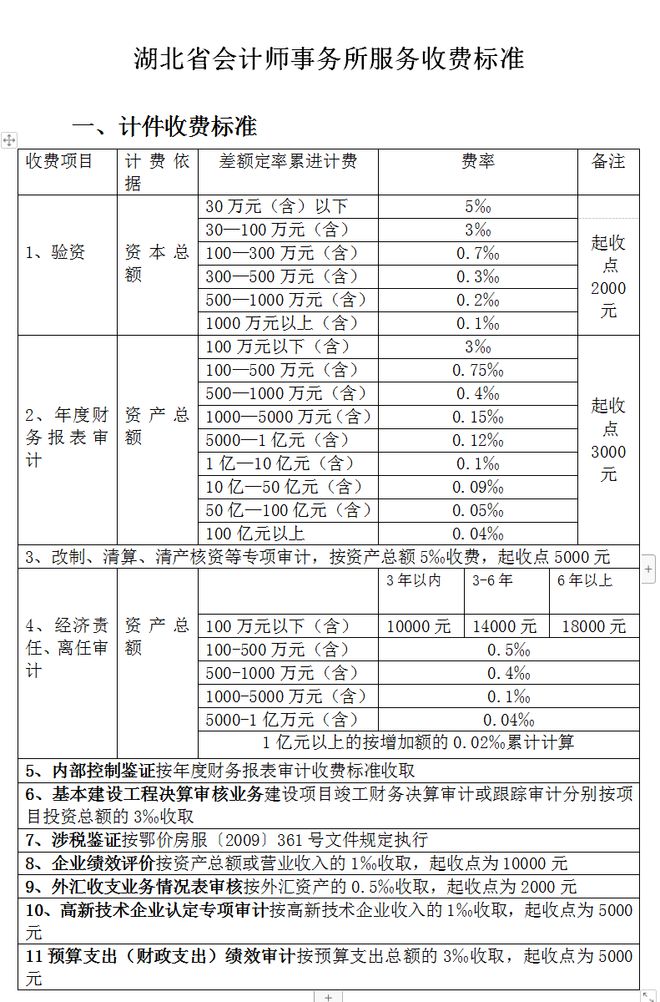 會計師事務(wù)所服務(wù)可參考地方收費標(biāo)準(zhǔn),如湖北省地方標(biāo)準(zhǔn)——《湖北省物價局省財政廳關(guān)于印發(fā)<湖北省會計師事務(wù)所服務(wù)收費管理實施辦法>的通知》(鄂價規(guī)〔2010〕265號),具體如下: