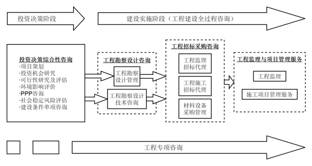 全過程工程咨詢(Construction Project Management,CPM)是指在土地收儲(chǔ)和規(guī)劃、項(xiàng)目可行性研究和設(shè)計(jì)階段,以及后續(xù)的投資決策、招投標(biāo)、施工、竣工驗(yàn)收、移交使用等各個(gè)階段,對(duì)工程項(xiàng)目的整個(gè)生命周期提供一站式的服務(wù)與管理。全過程工程咨詢可以幫助業(yè)主優(yōu)化投資、控制風(fēng)險(xiǎn)、提高效率,實(shí)現(xiàn)工程質(zhì)量、安全、進(jìn)度等方面的目標(biāo),同時(shí)也可以促進(jìn)行業(yè)健康發(fā)展、提升工程建設(shè)行業(yè)的水平和能力。國(guó)家推行全過程工程咨詢的主要目的是為了提高建設(shè)項(xiàng)目的質(zhì)量和效益,降低工程風(fēng)險(xiǎn)和投資風(fēng)險(xiǎn)。通過引入專業(yè)的第三方咨詢機(jī)構(gòu),從項(xiàng)目立項(xiàng)、規(guī)劃設(shè)計(jì)、招投標(biāo)、施工監(jiān)理、驗(yàn)收等各個(gè)環(huán)節(jié)對(duì)建設(shè)項(xiàng)目進(jìn)行全過程跟蹤和管理,以保證工程質(zhì)量和安全,并在控制投資成本和推進(jìn)工期方面發(fā)揮積極作用。此外,全過程工程咨詢還有助于促進(jìn)行業(yè)標(biāo)準(zhǔn)化、規(guī)范化和信息共享,提升整個(gè)建筑工程領(lǐng)域的發(fā)展水平和國(guó)際競(jìng)爭(zhēng)力。