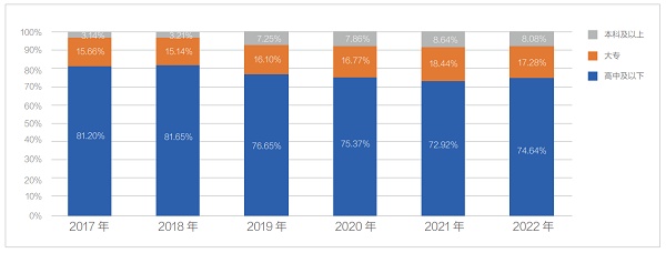 雄安新區常住人口教育水平變化(2017年-2022年)
