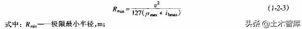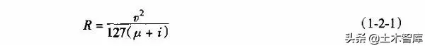 由第一章汽車行駛理論,根據(jù)汽車行駛在曲線上力的平衡式(1-1-31)可知圓曲線半徑計(jì)算公式為