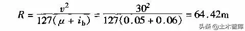 例1-2-2某山嶺重丘區(qū)三級(jí)公路,其設(shè)計(jì)車速v=30km/h,試問該公路的最小半徑為多少?