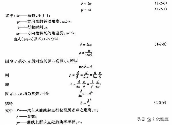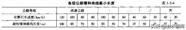 上式表明.最短的緩和曲線與半徑的大小無關(guān),即使平曲線半徑較大,當(dāng)汽車高速行駛時(shí),也應(yīng)有個(gè)轉(zhuǎn)變過程,因而式(1-2-15)是高等級(jí)公路設(shè)置緩和曲線的校核式。