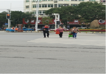 (五)行人信號(hào)燈未開(kāi)啟,導(dǎo)致行人過(guò)街時(shí)與車(chē)輛沖突點(diǎn)增多,如圖-4所示。
