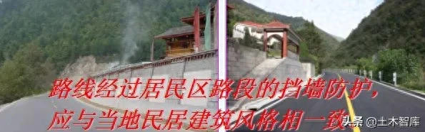 高陡土質邊坡,低擋墻、三維網綠化,減少生硬高大的擋防結構。