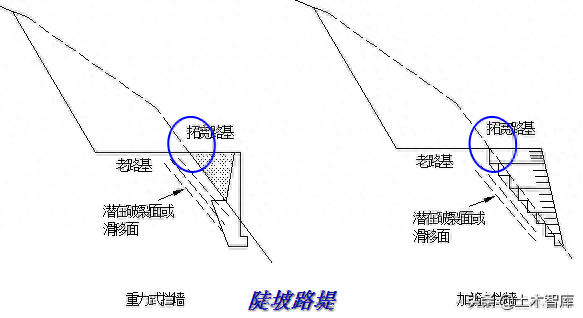 拓寬路基的穩定性分析與新建路基相同,必須注意的是在陡坡穩定性分析中必須考慮新路基沿新老路基結合面的滑移穩定性。