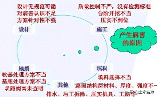 主要包含路面損壞狀況、路面結構強度狀況、路基損壞狀況、沿線設施損壞狀況。新老路基路面的拼接設計,可預防質量通病。