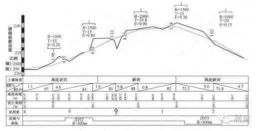 道路工程具有組成復(fù)雜、長(zhǎng)寬高三項(xiàng)尺寸相差懸殊、形狀受地形影響大等特點(diǎn),因此它的圖示方法與一般工程不完全相同。它的平面圖就是一個(gè)帶狀地形圖,縱向斷面圖是沿公路中心線的縱剖面圖,橫斷面是道路中心線法線方向的斷面圖,根據(jù)這三種圖所表示的內(nèi)容的差異,通常采用的繪圖比例各不同,繪圖比例的選擇,應(yīng)遵循圖面布置合理、均勻、美觀的原則,使繪出的圖形有較好的可讀性。