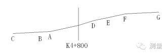 下面以表11-5的測(cè)量數(shù)據(jù)為例,繪制樁號(hào)為K4+800處的道路橫斷面的地面線。