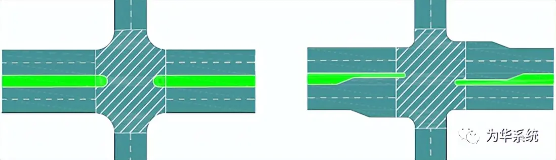 圖5 縮小中分帶寬度并壓縮車道寬度設置左轉專用車道