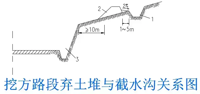 ③截水溝水流不應(yīng)引入邊溝,當(dāng)必須引入時(shí),應(yīng)增大邊溝橫斷面,并進(jìn)行保護(hù);