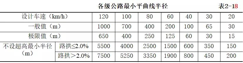 極限最小半徑:能保證按設(shè)計速度行駛的車輛安全行駛的最小半徑