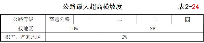 當曲線半徑小于表2-20或表2-23中規(guī)定的不設(shè)超高最小半徑時,均應(yīng)設(shè)置超高