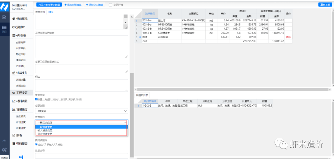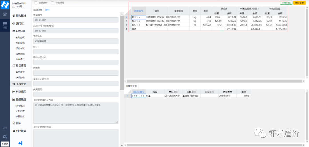 圖3縱橫計(jì)量支付結(jié)算決算一體化云版軟件-變更的實(shí)施