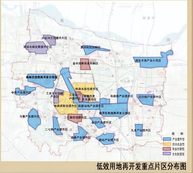 產(chǎn)業(yè)提升型:惠濟科技創(chuàng)新區(qū)、鄭東農(nóng)旅產(chǎn)業(yè)示范區(qū)、高新區(qū)低效再開發(fā)示范區(qū)、中原產(chǎn)業(yè)提升區(qū)、馬寨產(chǎn)業(yè)提升區(qū)、二七南產(chǎn)業(yè)提升區(qū)、健康產(chǎn)業(yè)提升區(qū)、南站產(chǎn)業(yè)提升區(qū)、鐵路沿線產(chǎn)業(yè)提升區(qū)、金岱產(chǎn)業(yè)提升區(qū)、經(jīng)開區(qū)低效再開發(fā)示范區(qū)、九龍產(chǎn)業(yè)提升區(qū)、商都路產(chǎn)業(yè)提升區(qū)、白沙南產(chǎn)業(yè)提升區(qū)。