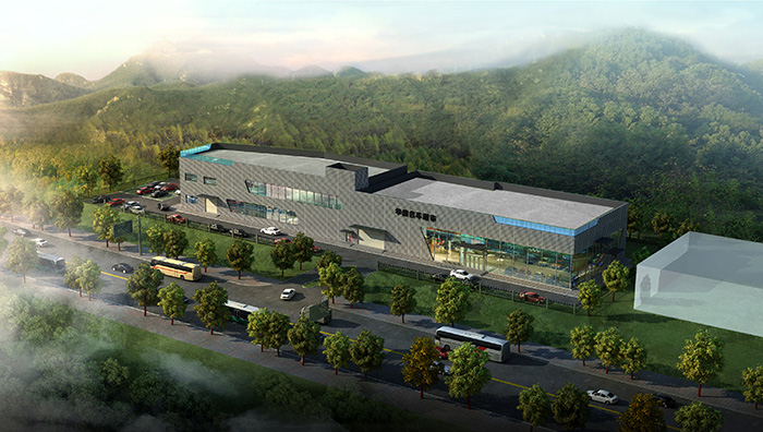 本項目將汽車綜合展廳居中布置,將停車場布置在項目西側(cè),并借用停車場地形成消防回路。